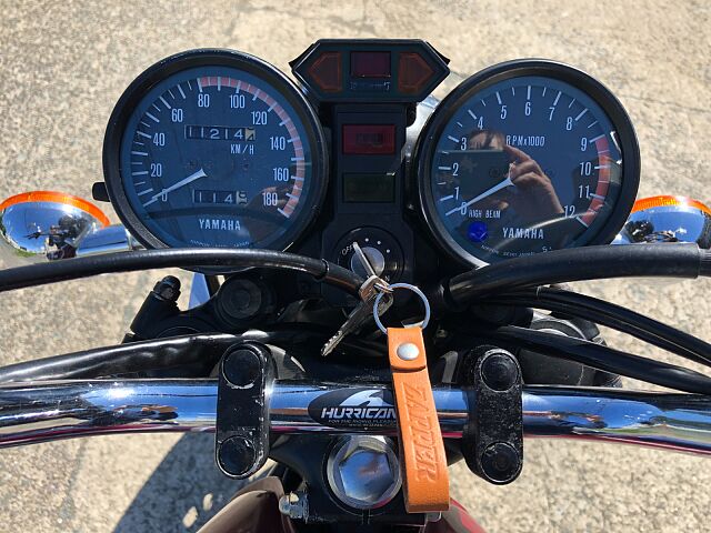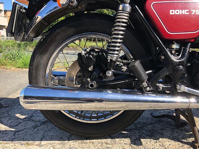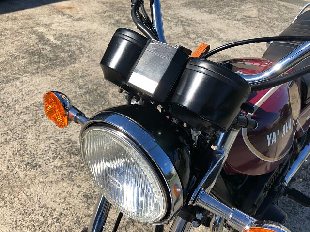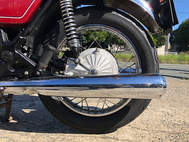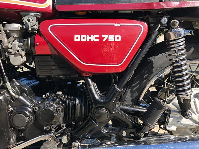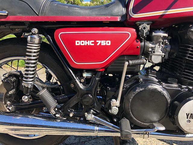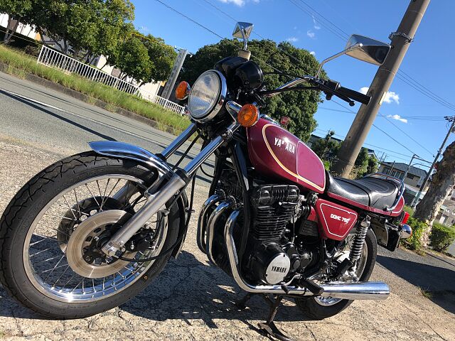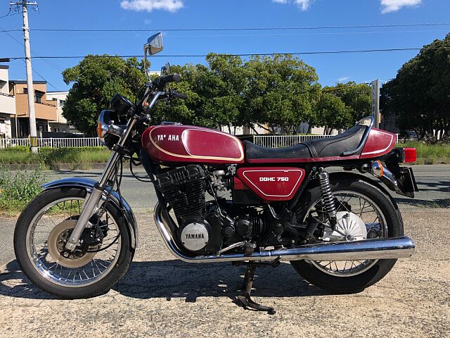 1977年式ヤマハGX750です。DOHC並列3気筒のパワーユニットや、当時では珍しいシャフトドライブを選択するなど、ホンダ、カワサキのマルチ路線とは一線を画したコンセプトを打ち出しました。販売台数としての結果はさておき(笑)、TX750もしかり、ヤマハ開発陣の独創性(ただのあまのじゃく?)を強く打ち出した車両の一台です。 まぁ、すごいコンセプトがあったかどうかは知りませんが、実際の車両は、意外にも(失礼!)とても乗りやすく、48年たった今でもロングツーリングで十分イケるポテンシャルを感じます。シャフトドライブの癖もかわいいと感じる程度で、ぜんぜんOKです。 結構車検が残っているので、ご希望とあらば、試乗もOKとしましょう!だだし、コカしたらお買い上げでよろしくお願いします。