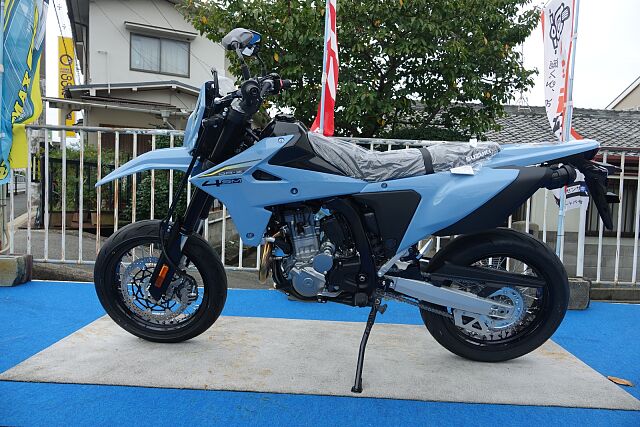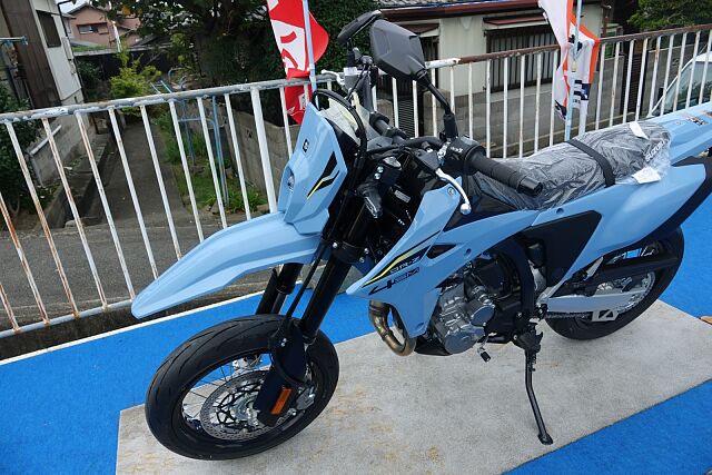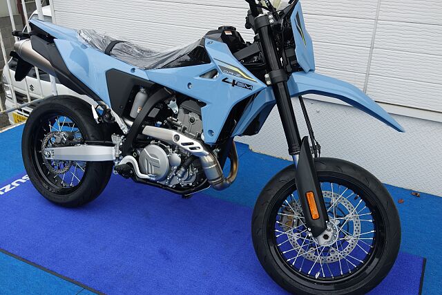 新車販売・要事前問合せ.当店の車両をご覧頂きましてありがとうございます。スズキ正規代理店として大阪の箕面市で営業しております。電車でお越しの方は、阪急牧落駅より徒歩10分!お車の場合は、国道171号線牧落交差点を南に100M池田方面となります。常に上質のバイクをご提供出来るように頑張っております。レンタルバイクも取り扱いしておりますので修理の代車もお任せ下さい。スズキの2025年式DR-Z4SMは、スタイリッシュなスカイグレーのカラーが魅力のオフロードバイクです。軽量な車体と優れたサスペンションにより、初心者から上級者まで扱いやすく、高い走破性を発揮します。エンジンはパワフルで燃費も良く、耐久性にも優れています。ユーザーからはデザインの良さと操作性の高さ、信頼性への評価が高いです。アドベンチャーやトレール走行に最適な一台で、新たなライディング体験を提供します。