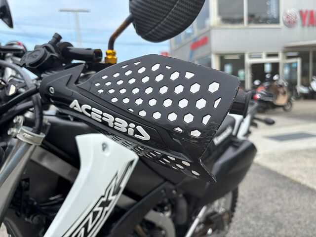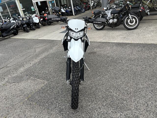 カワサキKLX2502016年式カラーはブライトホワイト入荷しました。 中古車ですので使用感や使用キズ、スリキズ等ありますがまだまだ乗れます。 左右サイドカバー薄いスリキズあります。右ナックルガード割れています。12Vのソケット電源、5VのUSB電源あります。