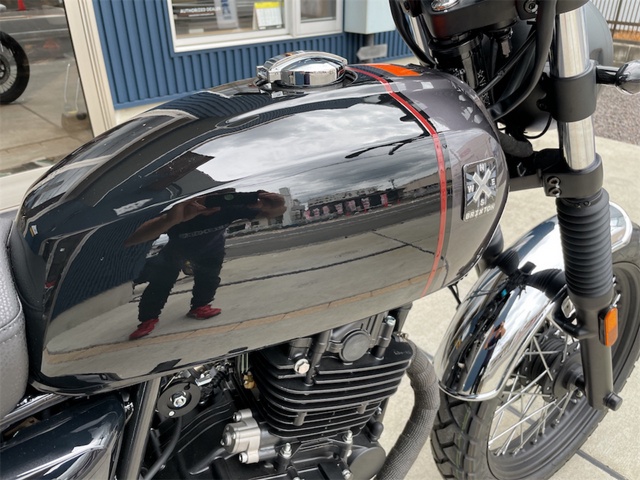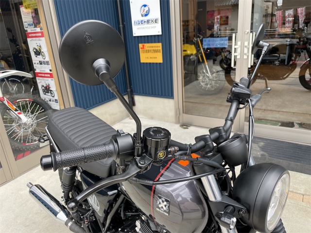 シンプルなボディですがマフラーバンテージや小ぶりなウィンカー・メッキフェンダーなどそのままでもかっこ良く乗れてしまいます。愛知県唯一のBRIXTON正規販売店です。盗難保険・ロードサービス・延長保証も取り扱っております。中部運輸局認証工場。