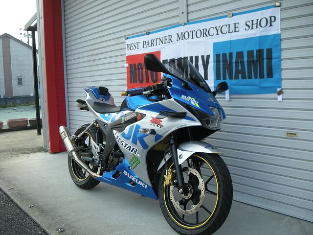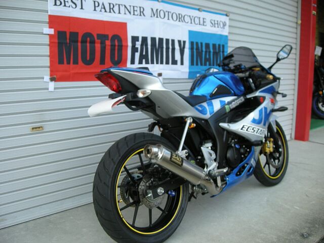 SUZUKI100周年カラーのGSX-R125ABS・ヨシムラマフラー・フェンダーレス・シングルシート・社外レバー・USB/スマホホルダー等社外パーツ多数付き・自賠責保険も9年3月まで付いてます・国家二級整備士が快適で安全なバイクライフをしっかりサポートさせていただきます!納車整備はもちろん車検・メンテナンス・カスタムなど安心してお任せ下さい!また通販実績も多数ございます。遠方のお客様も安心してご購入いただけます様ご対応させていただきますので気軽にご相談下さい・中部運輸局認証工場完備でバイクを愛するライダーを応援しています!A・委託販売車両