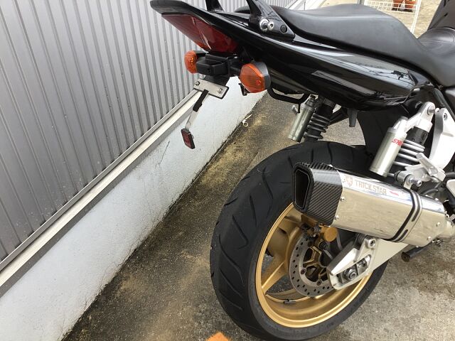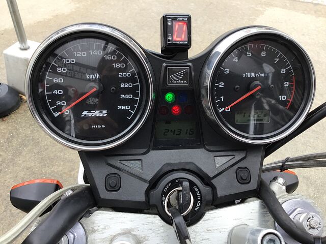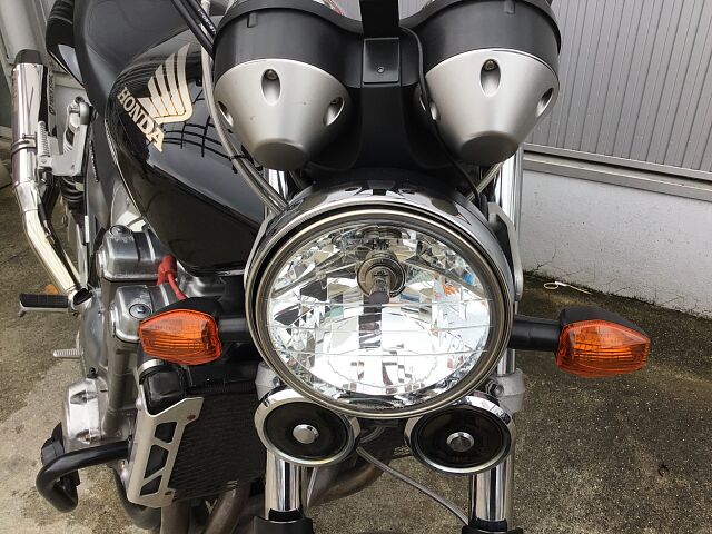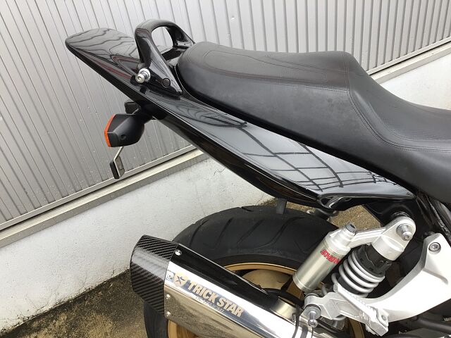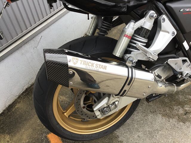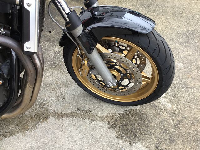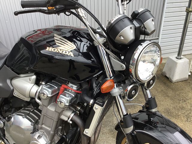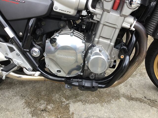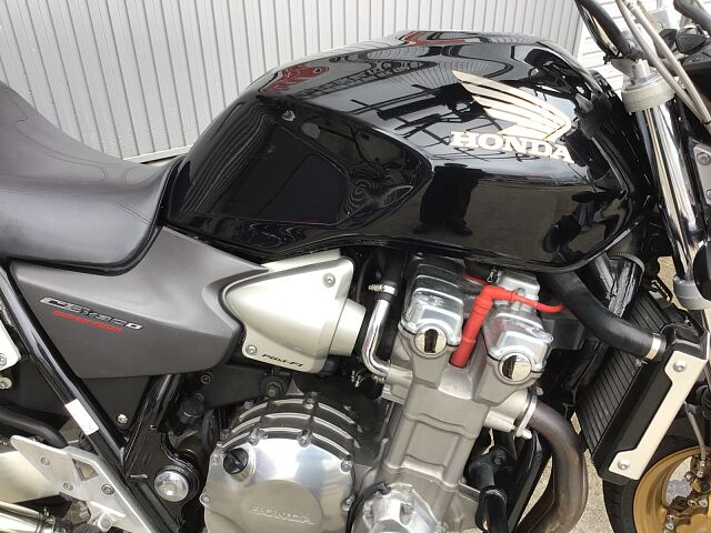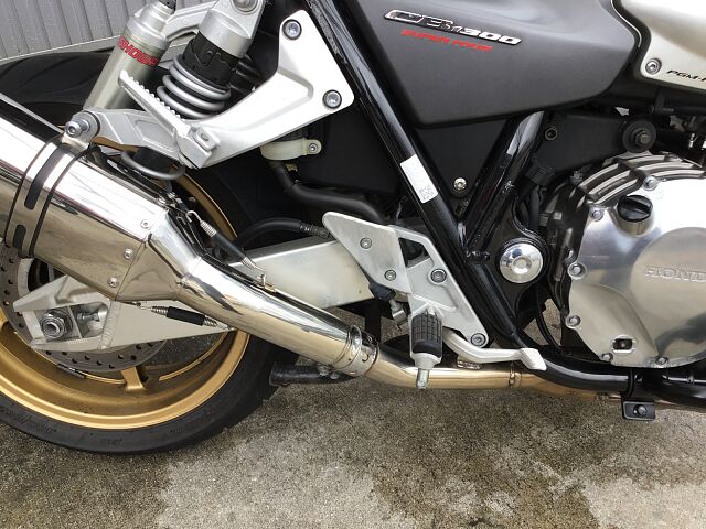 プロジェクトBIG-1の成果として発売されたCB1300SFはX4に搭載されていた1,300ccのエンジンで水冷4ストロークDOHC直列4気筒ユニットをベースにリファインされたものを搭載しています。2003年にフルモデルチェンジし、エンジンも変更され冷却フィンは無くなり乾燥重量で20kgの軽量化、三次元点火時期制御システム・PGM-FIの採用で、全回転域で俊敏かつ的確なスロットルレスポンスとスムーズな出力特性となっています。また盗難抑止機構「H・I・S・S」を採用されました。アップハンドルとマフラーなどカスタムしており乗り心地も良くなっています!