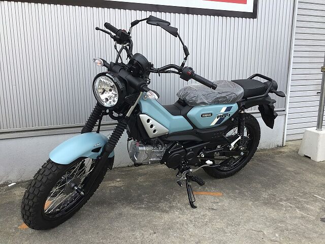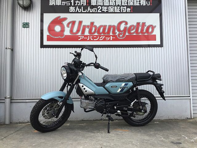 アンダーボーンフレームや、排気量114ccの空冷単気筒OHCエンジン、前後16インチのワイヤースポークホイールやブロックパターンのタイヤを装備されています。自動遠心クラッチの4速ミッションで、フロントはディスクブレーキながらABSは未装備。タンデムシートは標準装備。メーターはアナログ表示で、燃料計はあった。2025年モデルではデジタルメーター、ABS、シフトインジケーター搭載となりました。シート高795mmでスリムな車体ですので足つきも良く、タイヤもブロックタイプとなりますので多少の悪路も大丈夫!!車重も109kgでライバルのハンターカブより約10kgも軽いので取り扱いも楽々♪