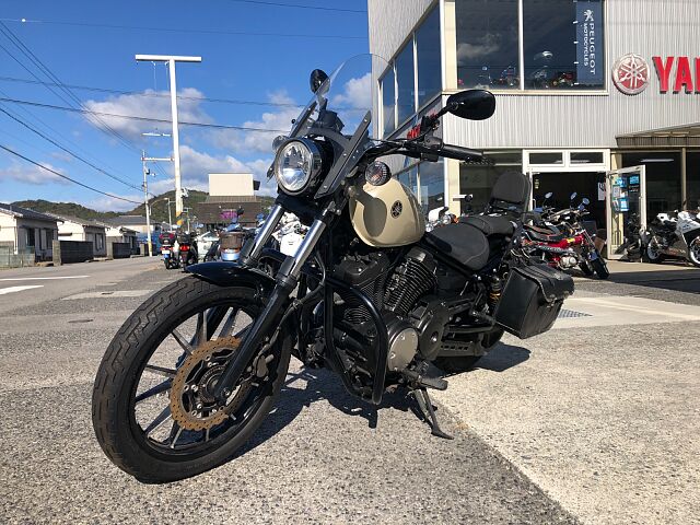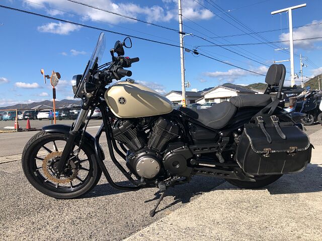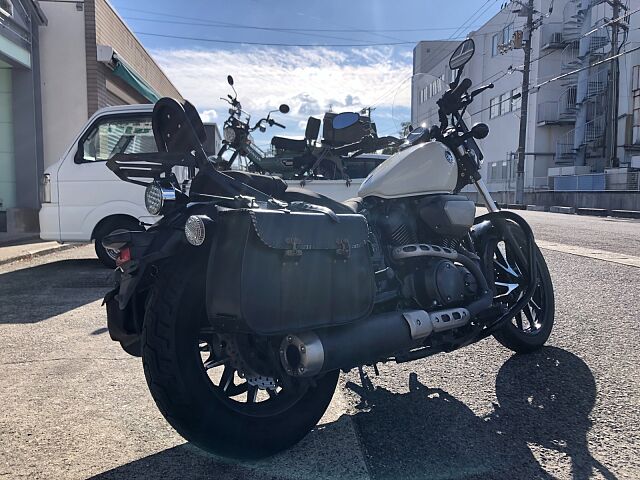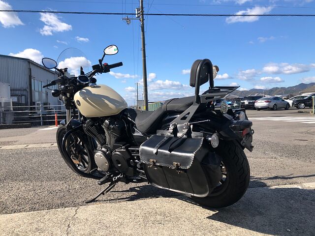 ヤマハ ボルドRスペック 2014年式 アイボリー 走行26,261km入荷しました。 中古車ですので使用感や使用キズはありますがまだまだ乗れます。 エンジンガード、フロントスクリーン、バッグレスト、リアキャリア、ETC等装着あります。 フロントフォーク等所々錆あります。 サイドバック装着していますが、フタの留め金が4個中3個破損しています。